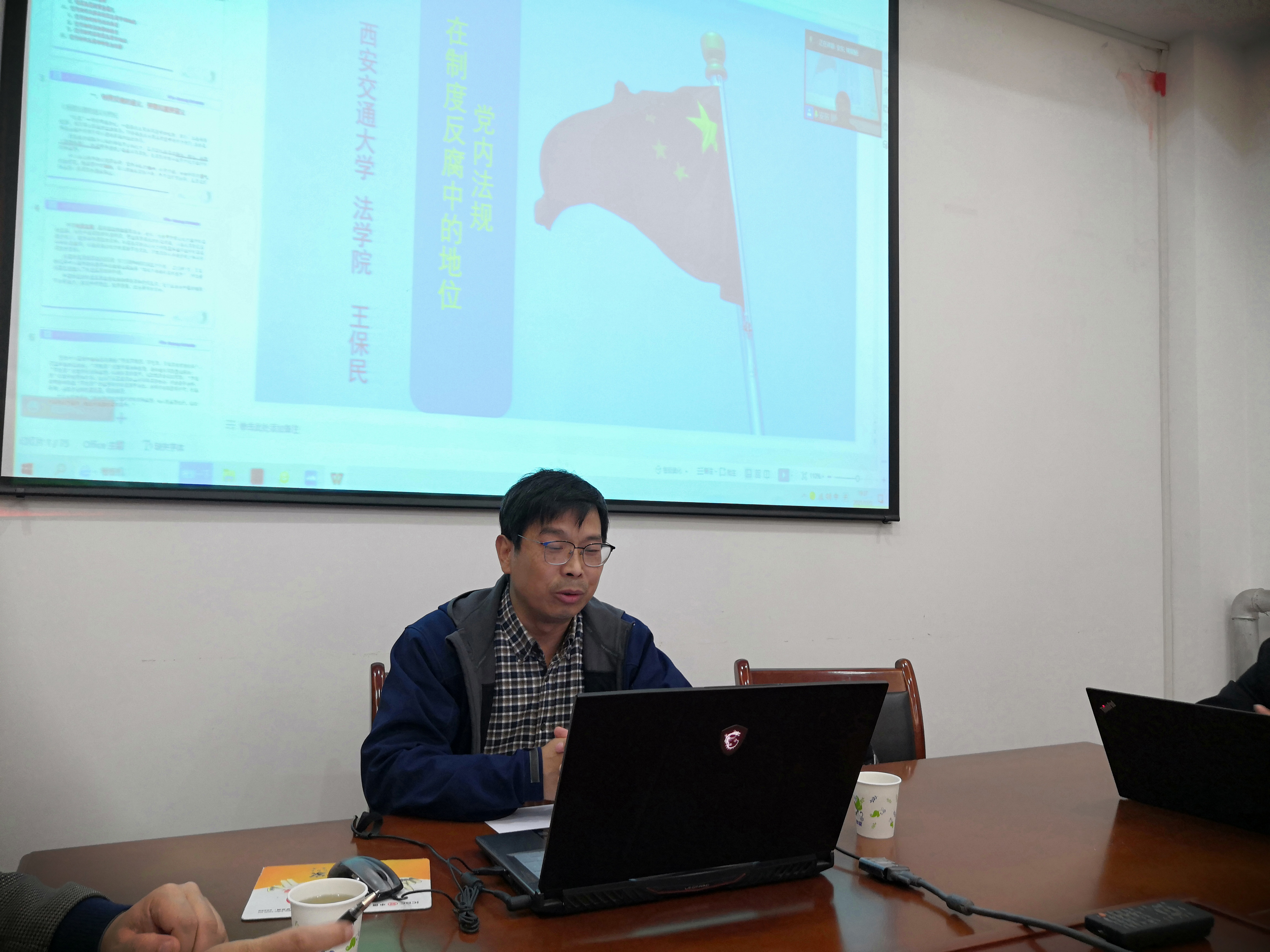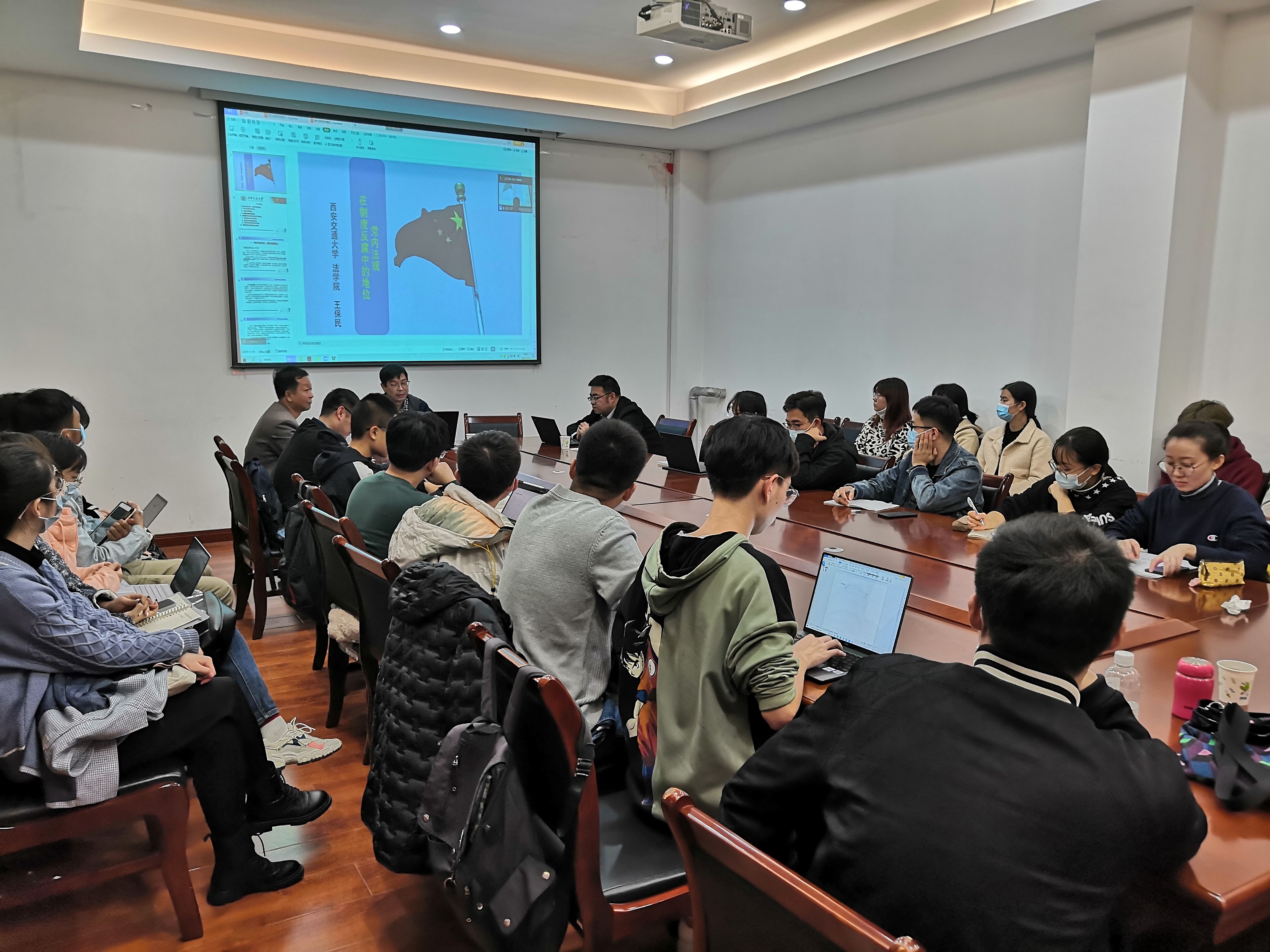 2021年11月3日19:30-21:30,作为公司党委“我为群众办实事”的系列活动之一,由太阳成集团tyc33455cc监察法学科、监察法教研室、监察法教研室党支部主办的“长安纪检监察论坛”第10讲在太阳成集团tyc33455cc雁塔校区中华法系与法治文明研究院会议室召开。邀请西安交通大学法公司教授、博士生导师王保民老师做题目为《党内法规在制度反腐中的地位》的专题讲座。参加讲座的有太阳成集团tyc33455经理姬亚平,各教研室教师、研究生代表,以及纪检监察实务界同志。