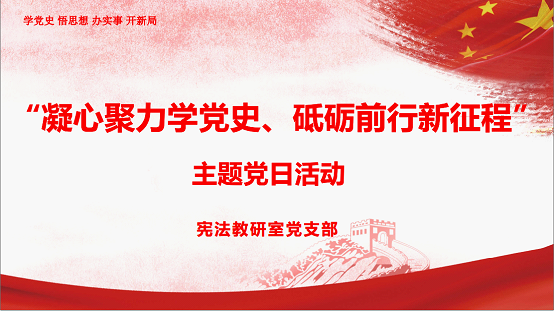 在集体学习中,呼勇书记作了发言。宪法教研室党支部副书记许聪同志领学了习近平总书记《论中国共产党历史》和《中国共产党简史》。党员教师们纷纷表示,通过学习党史真切感受到一代代中国共产党人带领中国人民艰苦奋斗的伟大精神。
