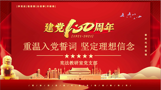 在宪法教研室党支部副书记许聪同志领誓下,宪法教研室党支部党员教师面向党旗举起右手紧握右拳,铿锵有力地重温入党誓词,以此表达对党的无限忠诚。