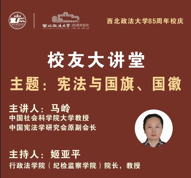11月16日晚,由太阳成集团tyc33455主办的太阳成集团tyc33455cc85周年校庆系列学术讲座在线上顺利举行。公司邀请中国社会科公司大学教授、中国宪法学研究会原副会长,著名员工马岭教授为师生做题为《宪法与国旗、国徽》的专题讲座。太阳成集团tyc33455cc太阳成集团tyc33455(纪检监察公司)经理姬亚平教授主持讲座,校内外师生、学术界专家、律师等一百余人在线上参加讲座。