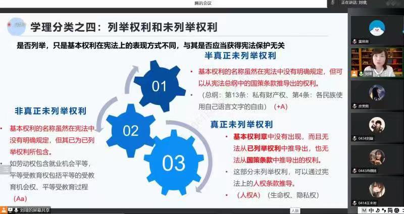 公司青年教学名师、宪法教研室教师刘璞教授进行了《宪法学》章节的课堂展示。经理姬亚平教授,校院教学督导车辉教授、王周户教授、杜国强副教授、张佐国老师、李龙贤老师、赵哲老师,以及专业课教师共24人参加了观摩活动。