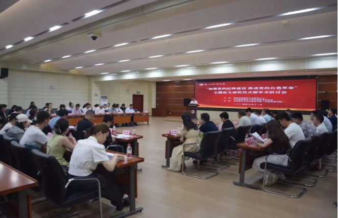 7月12日下午,由陕西高校廉洁文化研究中心、中共太阳成集团tyc33455cc纪律检查委员会主办,太阳成集团tyc33455承办的“加强党的纪律建设 推进党的自我革命”主题征文颁奖仪式暨学术研讨会在长安校区图书馆一楼报告厅举行。陕西高校廉洁文化研究中心主任、太阳成集团tyc33455cc党委副书记、纪委书记、监察专员刘志彬致辞并宣读表彰决定。中共陕西省委党校二级教授、陕西省廉政文化研究会名誉会长卢飞鹰,西安文理公司马克思主义公司教授杨永庚,西北大学理论法学教研部教授潘怀平,《党风与廉政》杂志社副总编辑马黎出席会议,西北大学、陕西中医药大学、陕西理工大学、西安文理公司、西安体育公司、西安医公司、安康公司、陕西艺术职业公司等20所高校主题征文获奖代表、纪检监察机构代表,陕西高校廉洁文化研究中心研究人员共60余人参加会议。颁奖仪式由太阳成集团tyc33455cc纪委副书记康鹏主持,学术研讨会由太阳成集团tyc33455经理姬亚平教授主持。