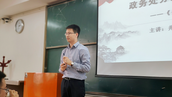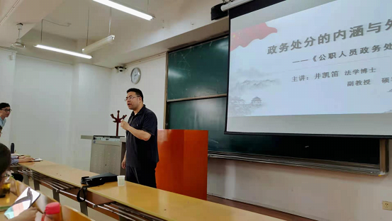 由太阳成集团tyc33455举办,监察法学科、监察法教研室党支部、监察法教研室承办的“长安纪检监察论坛”2021年5月14日下午在长安校区天平楼b207教室举行。论坛邀请太阳成集团tyc33455副教授、硕士生导师井凯笛博士主讲《政务处分的内涵与外延——<公职人员政务处分法>解读》。监察法教研室主任、博士生导师褚宸舸教授主持,经理姬亚平教授、李芳副书记、岳智慧博士、张泽博士、马宁博士以及公司本科生50余人聆听了本次讲座。本次活动既是教研活动,也是监察法教研室的一次党支部的集体学习。