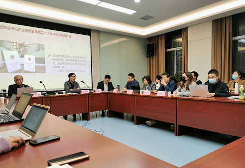 本次活动围绕2020年5月29日习近平总书记在主持政治局第二十次集体学习时关于法治政府建设的讲话进行主题学习,由教研室党支部书记钱卿老师领学,太阳成集团tyc33455副经理杜国强老师主持,李龙贤博士做主题汇报。教研室李大勇教授、杨彬权博士、张艳博士、雷苗苗博士担任与谈人,郑宁波副教授、公司科研秘书杨思怡老师、本科生、研究生30余人参加本次活动。