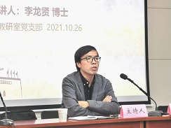 活动的第一部分,由党支部书记钱卿老师领学习近平总书记的重要讲话精神。总书记在指出,民法典是新中国成立以来第一部以“法典”命名的法律,是新时代我国社会主义法治建设的重大成果,在中国特色社会主义法律体系中具有重要地位,是一部固根本、稳预期、利长远的基础性法律。实施好民法典重点要做好依法、执法、司法、普法宣传和理论研究等工作。各级政府要以保证民法典有效实施为重要抓手推进法治政府建设,把民法典作为行政决策、行政管理、行政监督的重要标尺,不得违背法律法规随意作出减损公民、法人和其他组织合法权益或增加其义务的决定。钱卿老师表示,民法典出台后,在其他部门法领域是否也能推进法典化的编纂已经成为理论界和实务界关注的热点问题,行政法的法典化还需要进一步的探究,而今天李龙贤老师的报告一定会给我们带来很多有益启发。