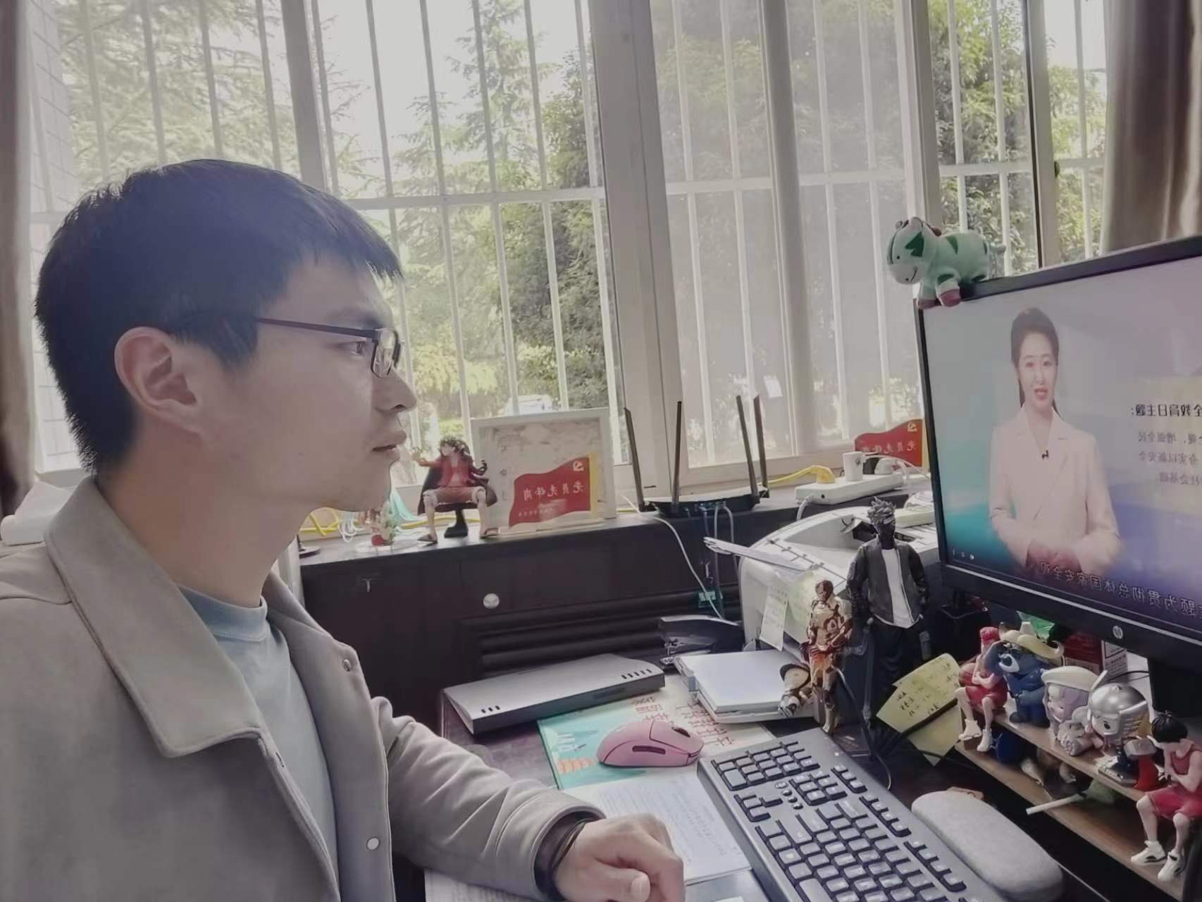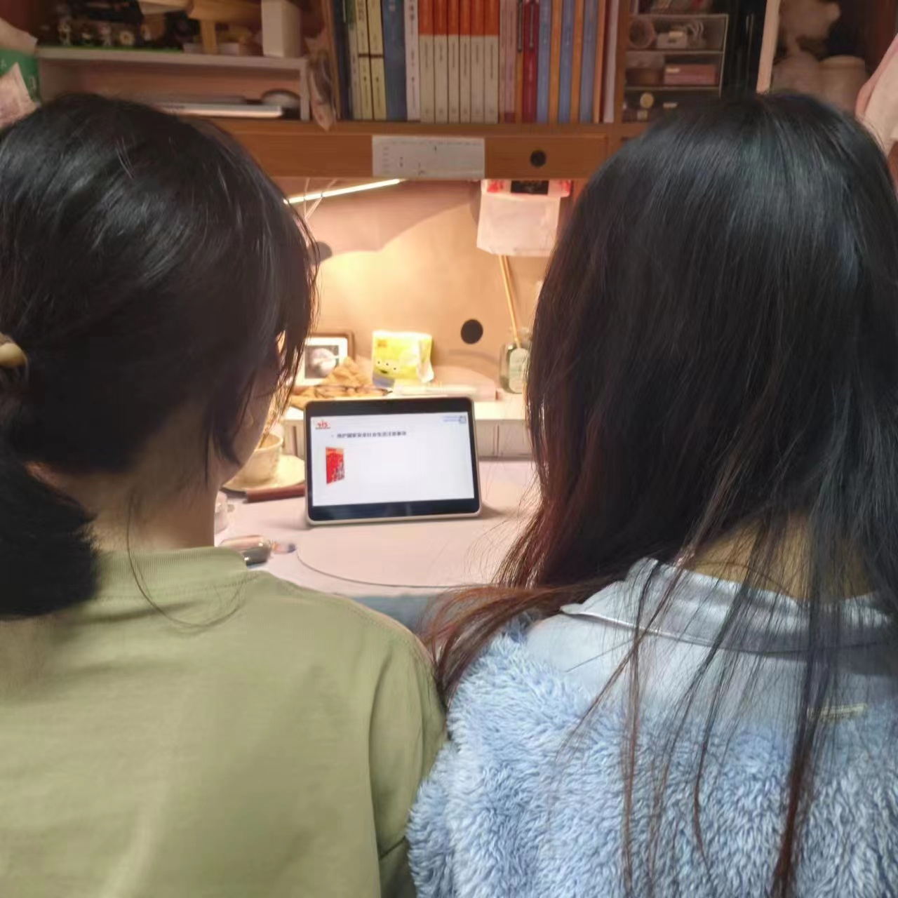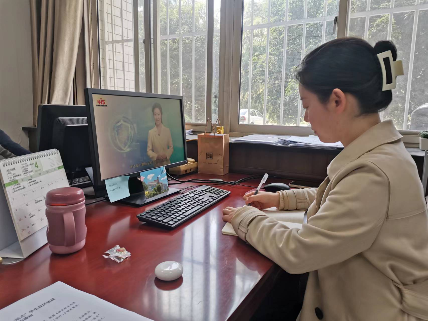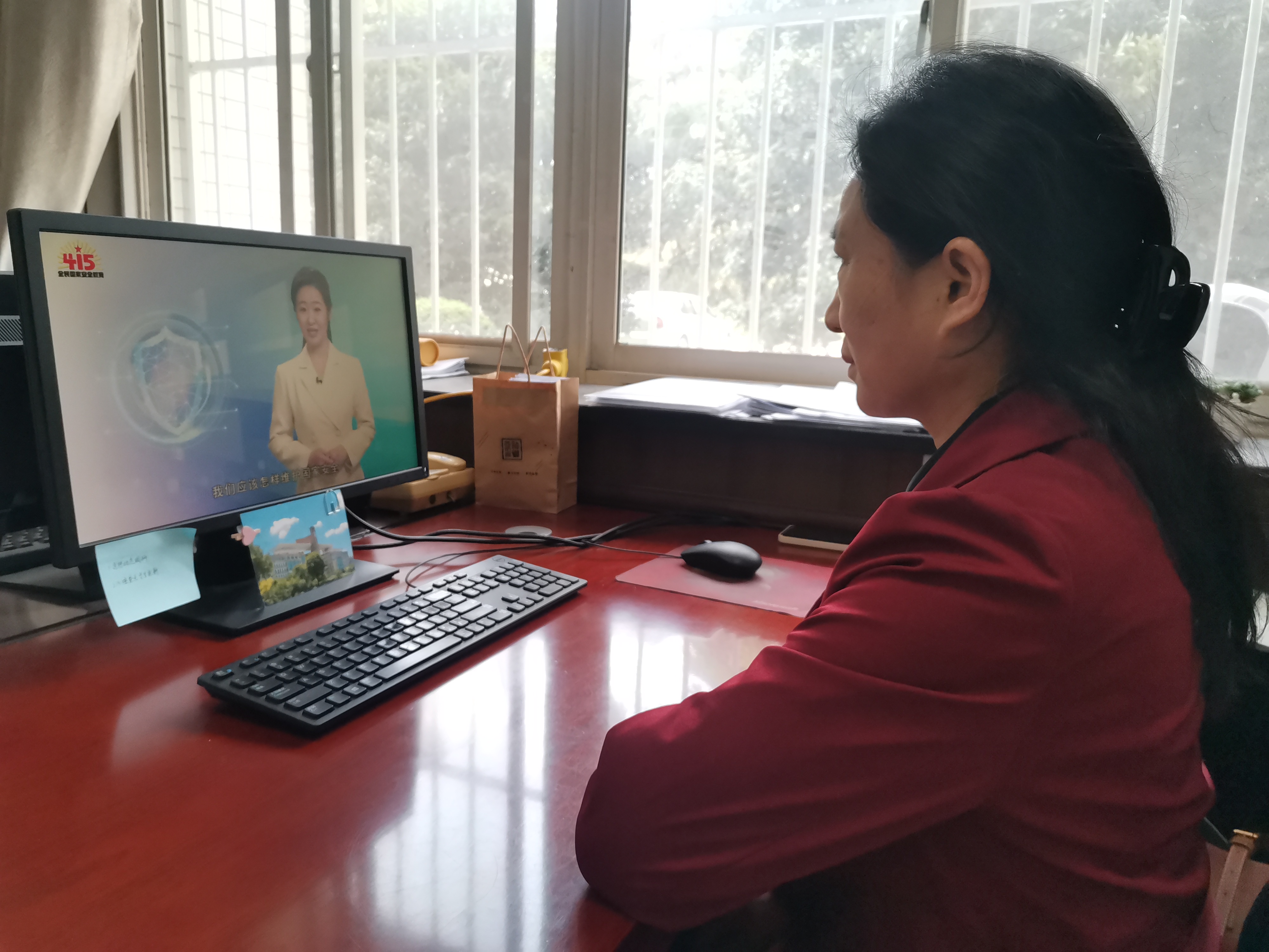 同学们通过各方平台在线观看直播,不时与身边舍友讨论,交流自己对国家安全的观点与认识。
