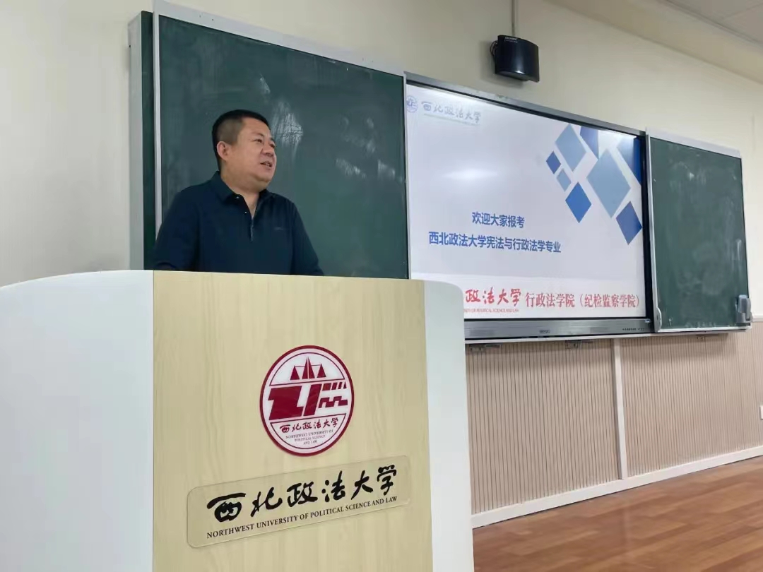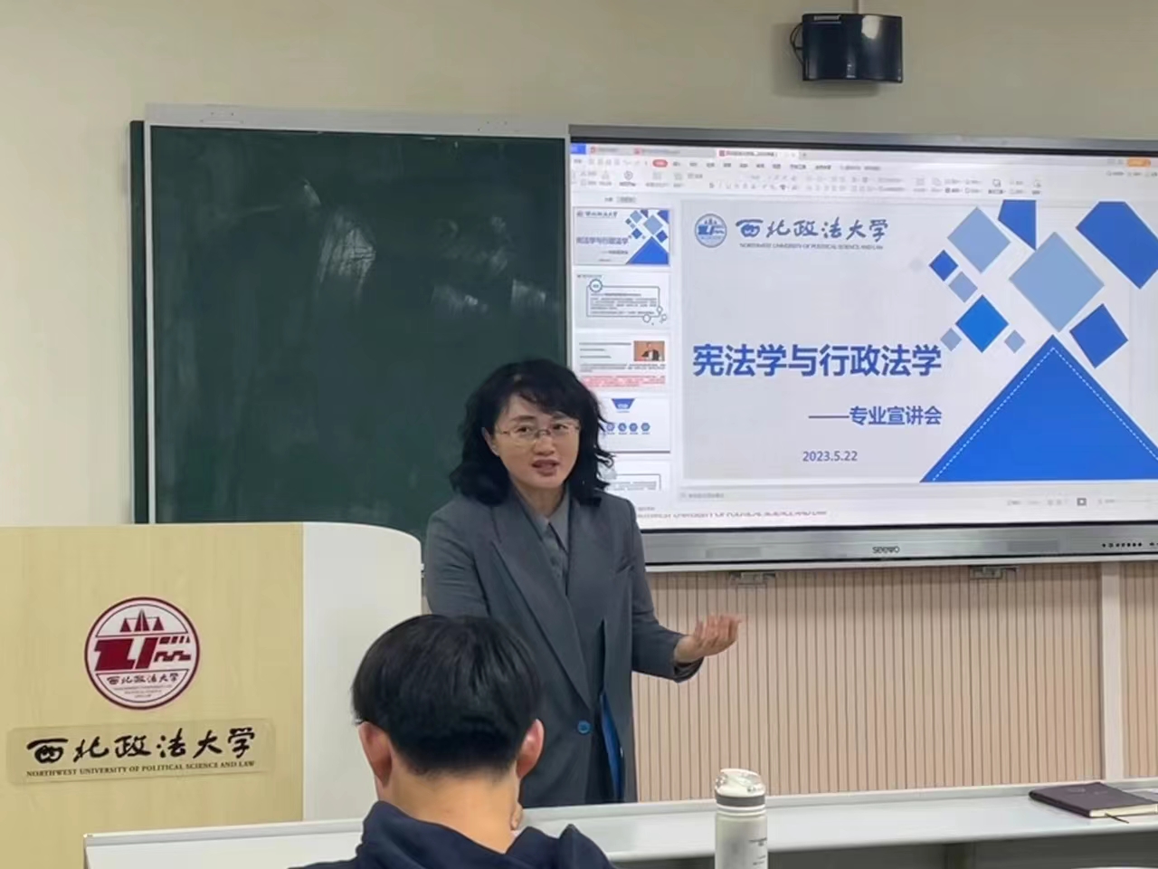 教师代表周敏副教授结合“中国-中亚峰会”以及参与的科研项目为例,指出宪法学与行政法学学科涉猎广泛、实用性强,周敏又结合建设法治国家、法治政府、法治社会目标对宪法学与行政法学专业进行系统性分析,使同学们更加了解宪法学与行政法学专业的知识结构与学科属性。