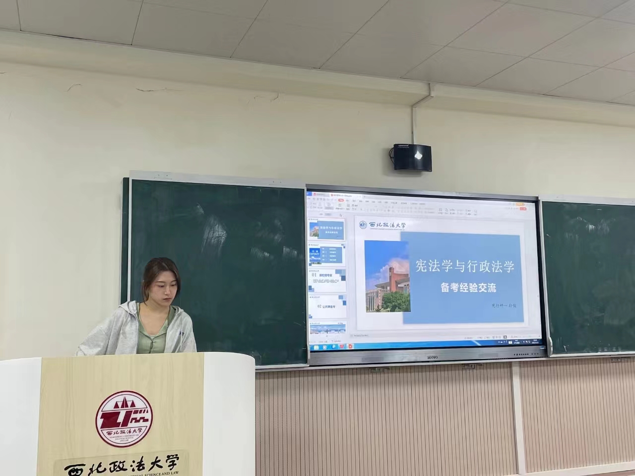 硕士研究生代表孙天航结合宪法学与行政法学科在法学学科间的地位,以及择校规划和考研的意义与同学们展开交流,指出考研必须要脚踏实地,没有人能随随便便成功,选择考研就要忍受住寂寞、全心全意投入。