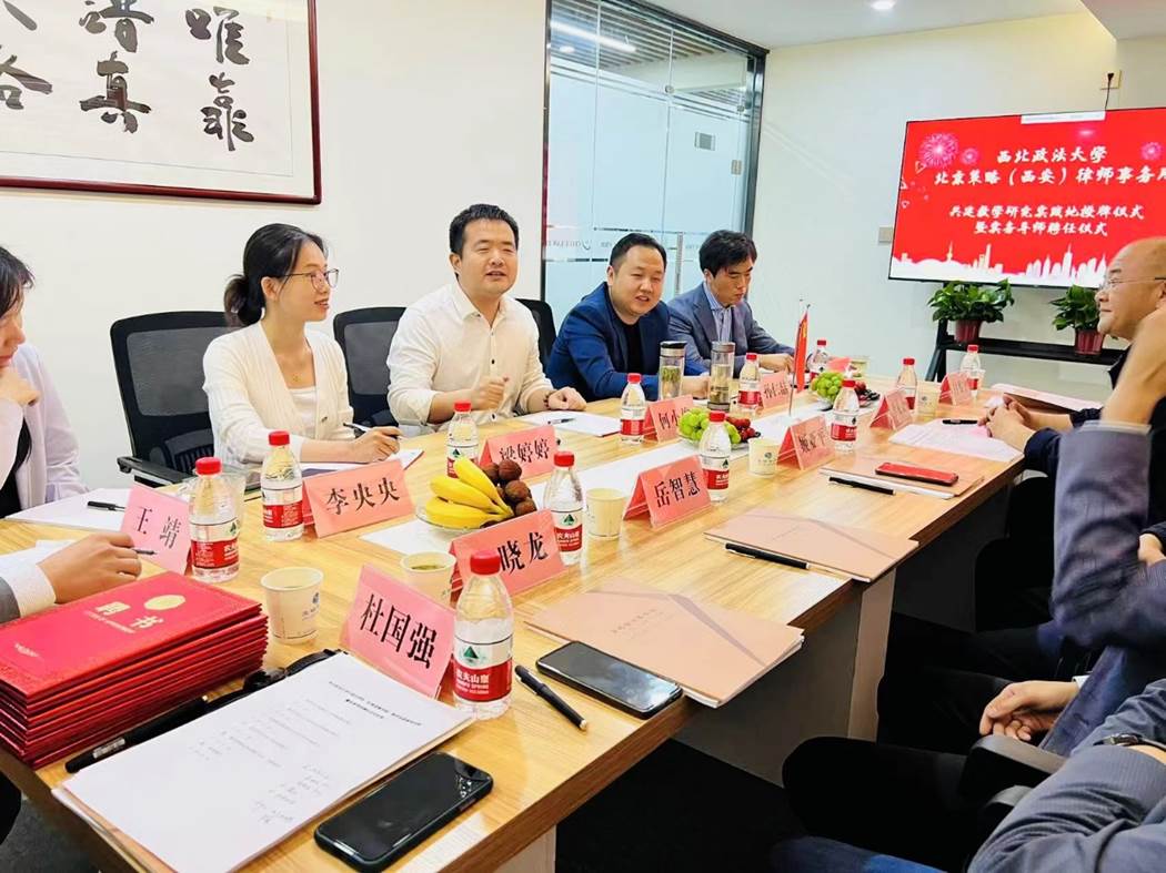 2023年6月2日星期五下午,太阳成集团tyc33455与北京策略(西安)律师事务所举行教学实践基地挂牌暨实务导师聘任仪式。活动由杜国强副经理主持,公司姬亚平经理、李龙贤博士、岳智慧博士、郑晓龙博士和付鉴宇博士参与。