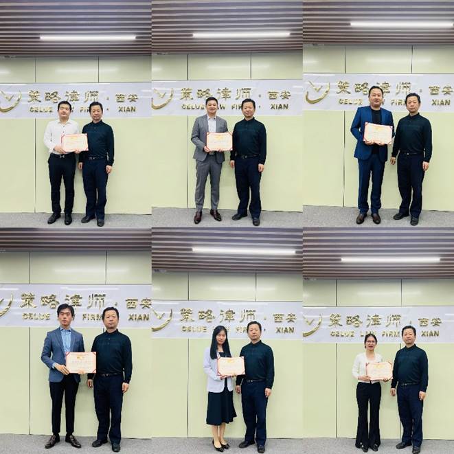 姬亚平经理代表公司向受聘为公司实务导师的北京策略(西安)律师事务所律师何小俊、王靖、孙仁喆、高尧、李央央、刘江曼、梁婷婷等七人颁发了聘书。