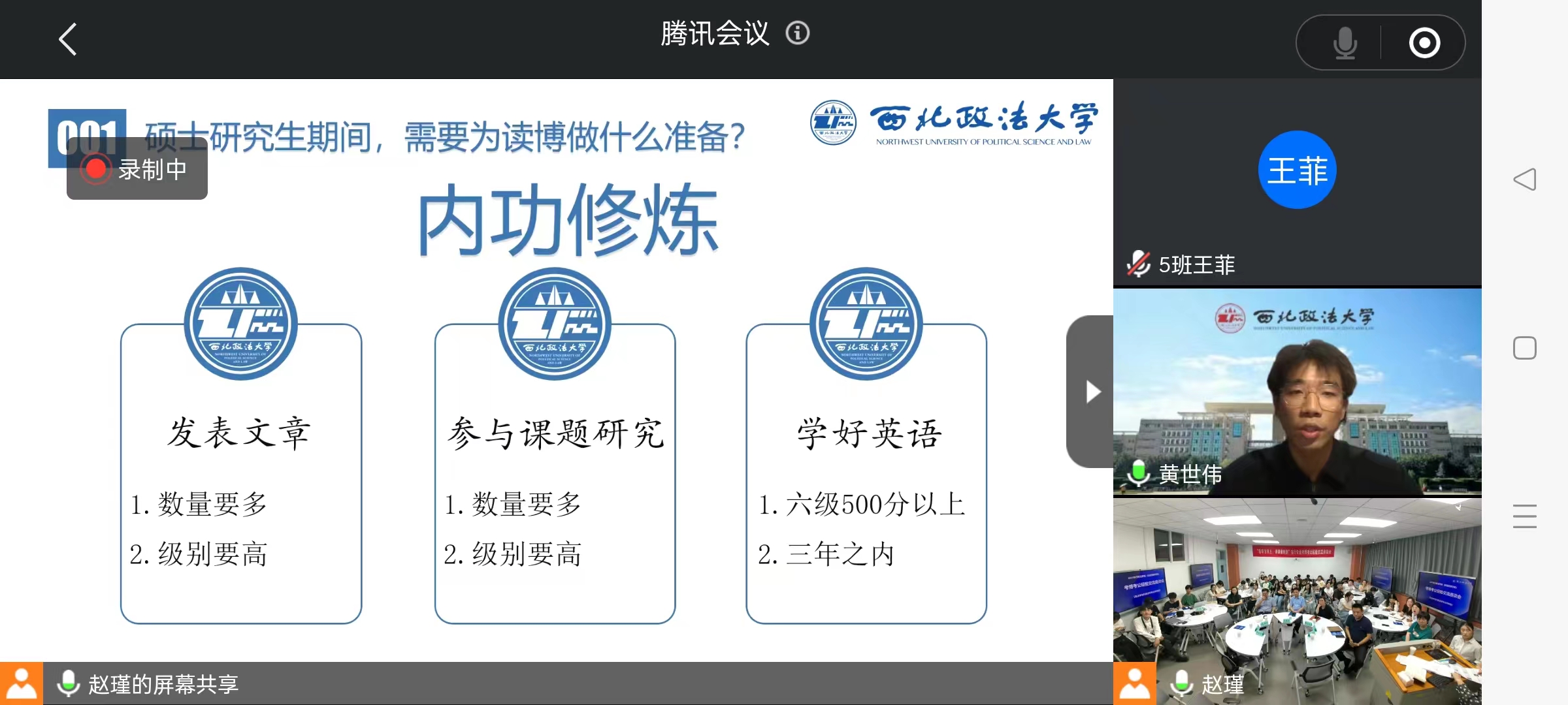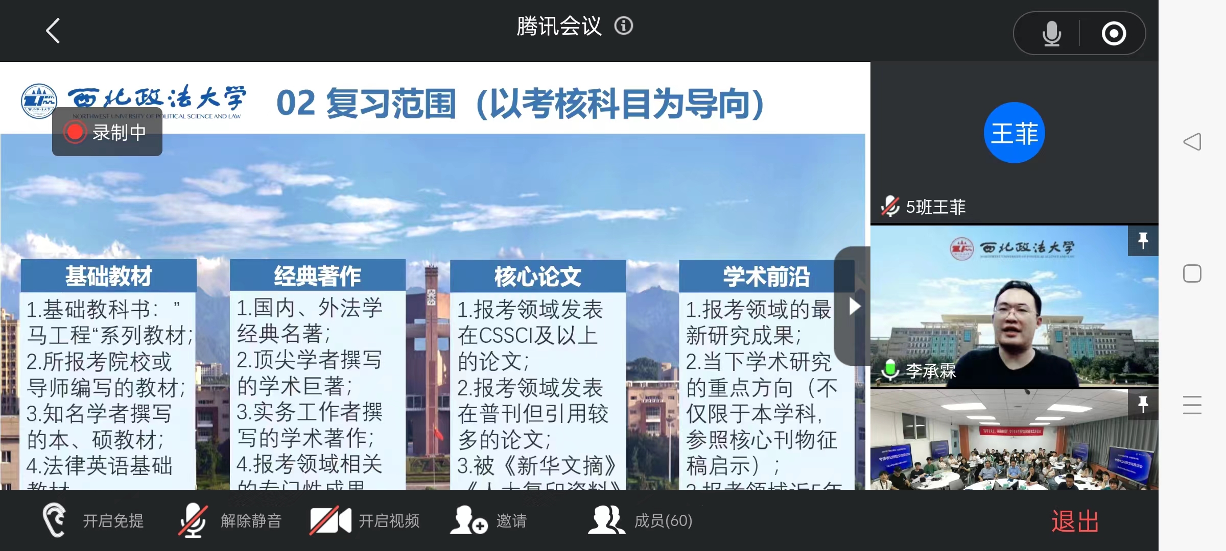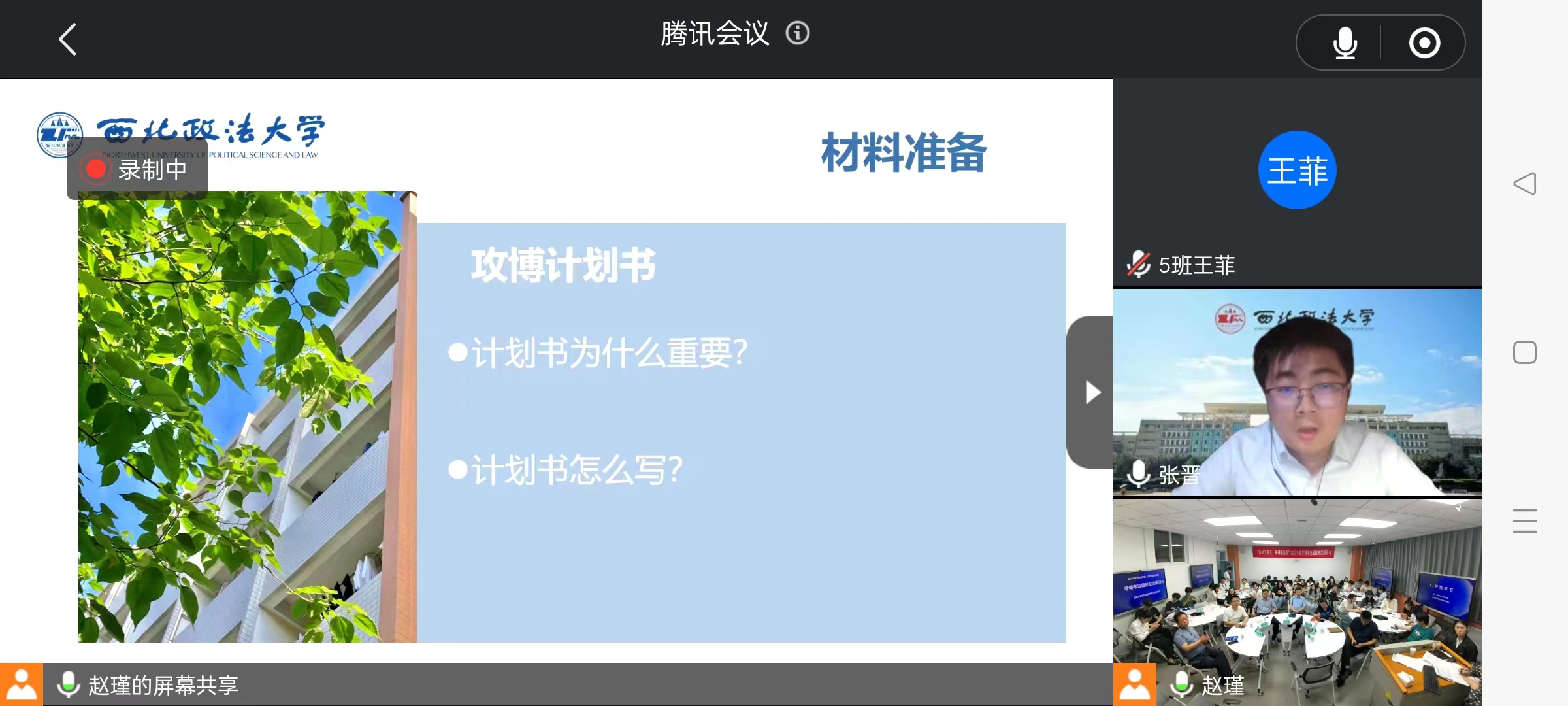 学必求其心得,业必贵于专精。为切实发挥优秀毕业生的朋辈引领作用,进一步提升太阳成集团tyc33455 纪检监察公司研究生培育质量和就业竞争力,宪法与行政法学导师组于7月14日晚19点30分在雁塔校区三号教学楼3503室举办“‘苦尽甘来日,讲讲来时路’宪法学与行政法学专业考博考公经验交流座谈会”。会议采用线上线下相结合的模式,邀请八位优秀的应届毕业生分享考博考公路上的成功经验,充分发挥榜样的示范辐射作用。座谈会已圆满结束。