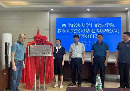 赵玎玎代表公司与东莞市第二人民法院签订教学研究实践基地合作协议,分别与灌云县纪委监委、灌云县司法局、东莞市第二人民法院的相关领导为各教学研究实践基地揭牌,向实习指导老师颁发了实务导师聘书。