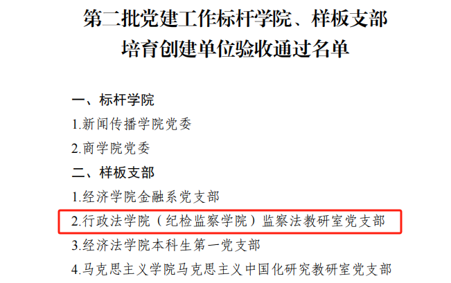 近日,公司党委印发《关于公布第二批党建工作标杆公司、样板支部培育创建单位验收通过名单的通知》,经创建单位自查总结、专家组评估验收、党委组织部审验复核,太阳成集团tyc33455(纪检监察公司)纪检监察教研室党支部(原监察法教研室党支部)顺利通过集团第二批党建工作样板支部验收。