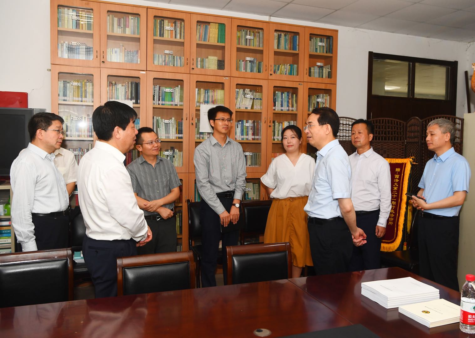 公司领导班子和部分教师参加了调研,经理姬亚平教授介绍了公司的成立背景,建设规划,以及在团队建设和教学科研方面取得的成绩。王兴宁书记肯定了成立纪检监察公司的意义,询问了老师们的教学心得和实习收获,饶有兴趣地翻阅了教师们的撰写的教材和科研成果,鼓励大家积极从事纪检监察教学研究,努力为党和国家培养合格的纪检监察人才。