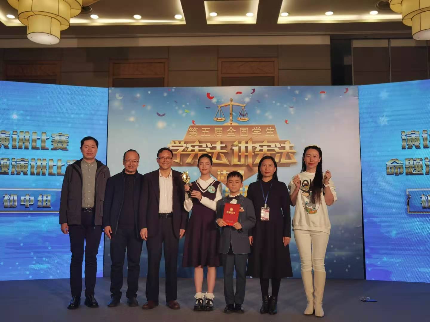 比赛分为演讲和知识竞赛两大部分,每个部分又有小学、初中、高中和大学四个层次组成。1 1月30日,演讲组初赛顺利举行,初赛采用主题演讲方式进行,小学组、初中组、高中组、大学组,均以优秀成绩杀出初赛、进入决赛。12月1日,演讲组决赛正式开始,决赛采用命题演讲的方式进行。选手上台后,需先进行题目抽签,从三至四道题目中抽取一道进行演讲。命题演讲对选手的宪法知识储备和即兴演讲能力作出了更高的要求。现场气氛紧张而热烈,陕西的参赛选手们以清晰的条理、卓越的台风,为在场的评委与观众呈现了一场演讲盛宴。