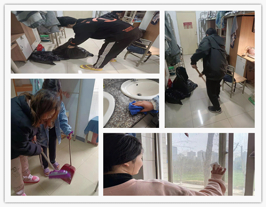 疫情封校期间,坚持两手都要抓,同学们在按时参加线上教学,完成学习任务的同时,还要做好日常卫生管理,打造干净整洁宜人的宿舍居住和学习环境,以预防各种流行传染疾病。
