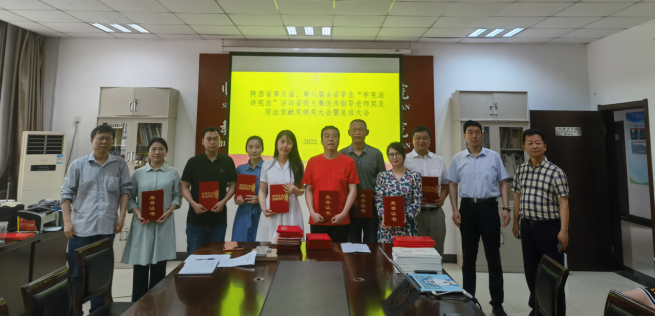 接着,公司副董事长孙昊亮教授分别给陕西省第五届全省员工“学宪法讲宪法”比赛中的优秀指导教师:李芳、侯西勋、钱锦宇等9人颁奖;给第六届比赛中的优秀指导教师:姬亚平、侯西勋、钱锦宇等9人颁奖;给第六届比赛活动组织中有突出贡献的员工:顾润都、何子铂等5人颁奖。