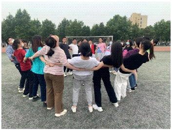 图为,公司2021级辅导员周磊磊老师带领2021级员工开展特色素质教育活动,该活动增进员工间相互了解的同时也培养了员工的团队精神。