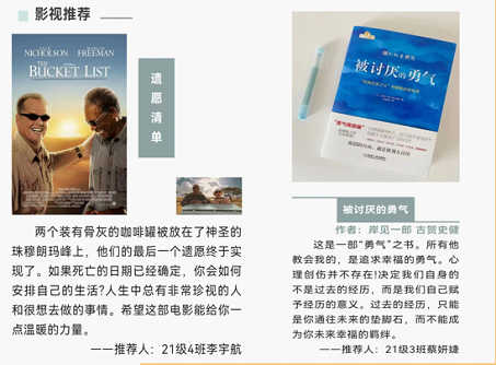 三、举办“书影藏理,慰藉心灵”主题书籍电影推荐活动,以师生共推的方式挑选丰富阅历、宽慰精神的书籍和电影,鼓励员工以影为鉴,以书为友,热爱生活,亲近生活,全院员工积极参与形成了良好的读书观影风尚。