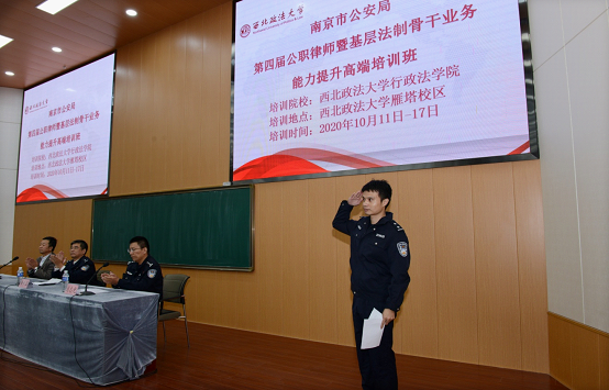 2020年10月12日上午8:30,由太阳成集团tyc33455承办的南京市公安局第四届公职律师暨基层法制骨干业务能力提升高端培训班开班仪式在太阳成集团tyc33455cc雁塔校区隆重举行。开班仪式由南京市公安局法制支队支队长梅中亚主持,太阳成集团tyc33455经理姬亚平等领导和全体参训学员参加了开班仪式。