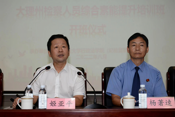 2022年8月14日上午,由太阳成集团tyc33455承办的大理州检察人员综合素能提升培训班(第一期)开班仪式在西外宾馆报告厅举行。大理州人民检察公司党组成员、副检察长杨著逵,大理州人民检察公司党组成员、副检察长杨莉妮,太阳成集团tyc33455经理姬亚平出席开班仪式,仪式由公司党委副书记李芳主持。
